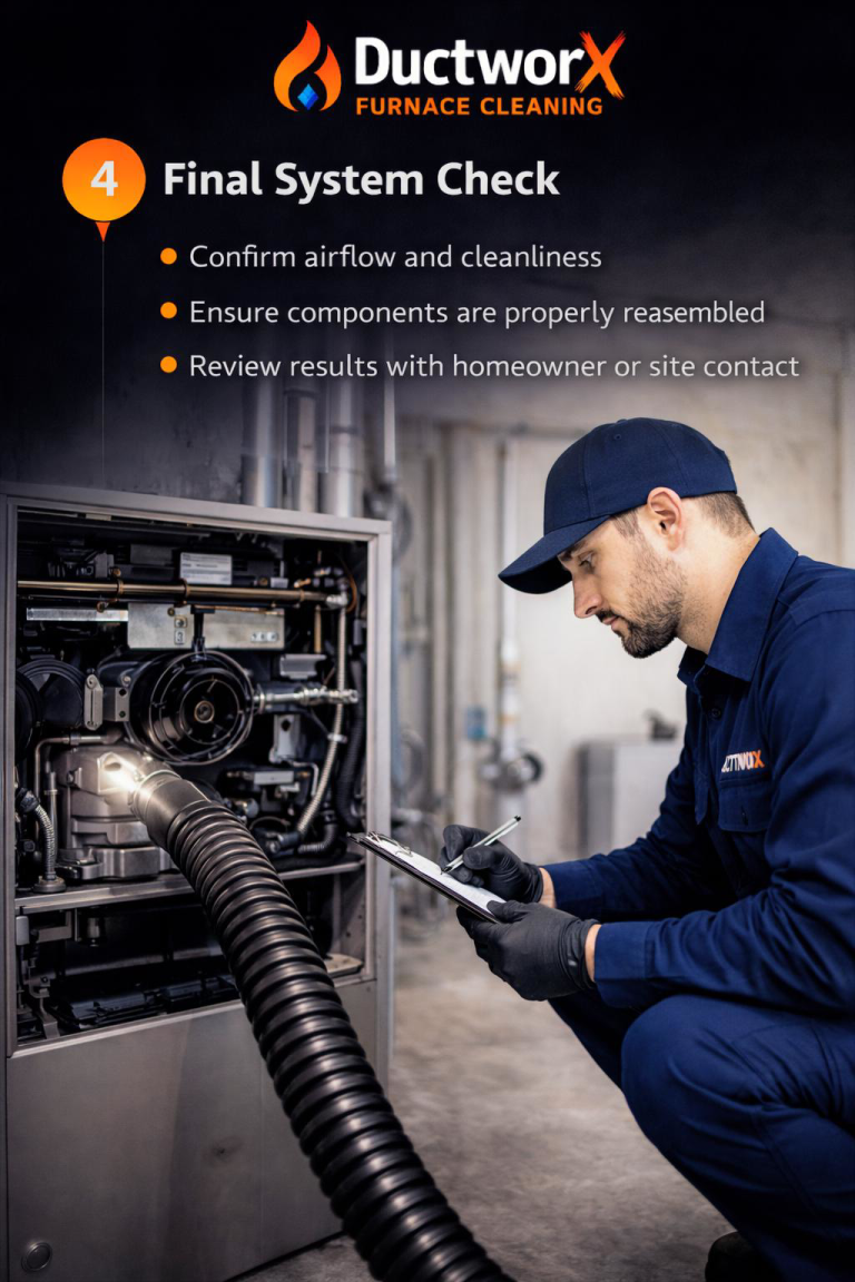 Our furnace-first methodology follows a clear, step-by-step process to ensure safe, thorough, and consistent cleaning results across residential and commercial systems.